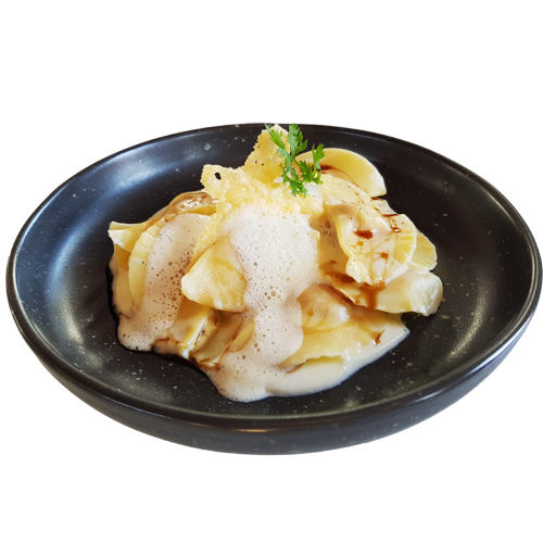 Menu Our Starters Maxi Cold Cuts Platter6 types of Italian cold cuts, , Taleggio cheese, Grana Padano cheese, Pomodorini Secchi , Olives, Homemade Focaccia Genovese The MozzarellaMozzarella imported from Italy(125gr), organic baby tomato, balsamic reduction, extra virgin olive oil. Homemade French FriesServed with Mayonaise and Ketchup Green Garden SaladServed with Sweet & Spicy sauce or White Sauce or Vinaigrette or Balsamic Dressing Spaghetti Tagliatelle Handmade Gnocchi Caserecce Macaroni Fusilli At The State of Pasta restaurant, you will be able to choose your favorite type of fresh pasta with our homemade sauce by yourself. Our Homemade Sauces The Real Spaghetti Carbonara Wagyu Bolognese Halle’Nduja Spicy Seafood Curry Spaghetti Vongole Pesto Vientianese Lao Sausage Tomato Creamy Ham & Mushroom Homemade Lasagna Wagyu Bolognese Lasagna Vegetarian Lasagna Homemade Ravioli Choose your favorite filling between Beef or Vegetarian Tomato Pesto Vientianese Creamy Pink DivaCombination of tomato sauce and cream sauce Foie Gras RavioliFoie gras and chicken filling, creamy white truffle oil emulsion, balsamic glaze and crispy Parmesan cheese I FEEL LIKE STEAK Australian Black Angus 120 Days -RibeyeServed with world famous sauce ''Café de Paris'' sauce. You can choose to eat with homemade french fries or fresh pasta HOUSEMADE DESSERT Chocolate FondantServed with homemade vanilla ice-cream, berries jam and lime crumble Tiramisu
